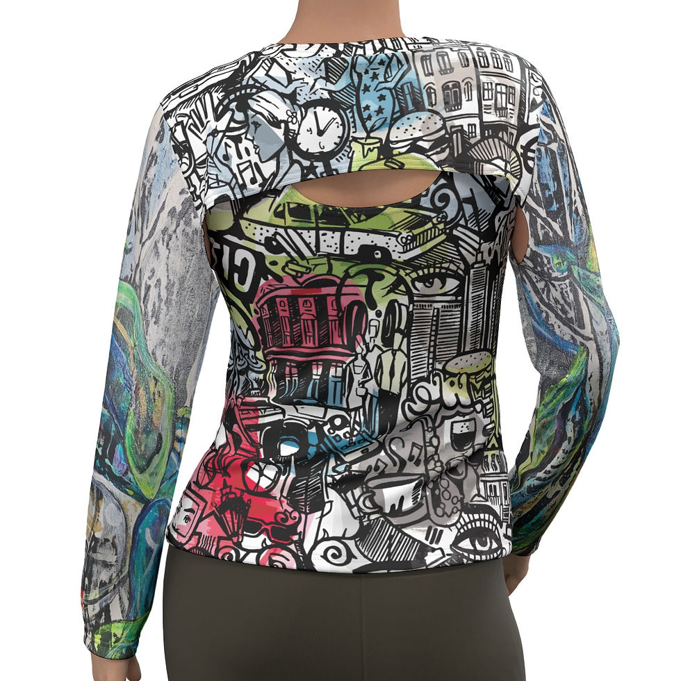 All-Over Print Women's Fake Two-piece Mesh Sleeve Cropped Hoodie